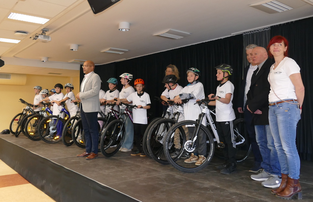 Auch der Aßlarer Bürgermeister Christian Schwarz sprach sich anerkennend über das neue Sportangebot aus, das Bewegung in die Schule bringe, und lobte die Zusammenarbeit mit dem in Aßlar ansässigen Fahrradhändler Volkmar Schneider, der bei der Wartung der Bikes wertvolle Hilfe leiste. Dieser, ebenfalls anwesend, zeigte sich erfreut darüber, an dem Projekt beteiligt zu sein. Abschließend ergriff Lucien Kempe, stellvertretender Schulleiter der Alexander-von-Humboldt-Schule, das Wort und dankte allen Förderern, darunter auch der Stadt Aßlar, von der immer wieder Zuwendungen kämen. „Wir haben weit über 30 Arbeitsgemeinschaften, dies ist wohl eines unserer Alleinstellungsmerkmale, und sind froh, als zertifizierte „Bikeschool“ ein weiteres hochwertiges Angebot machen zu können“, so Kempe.