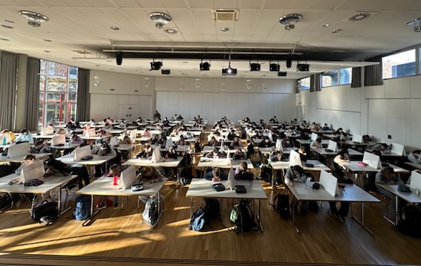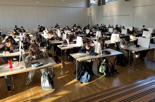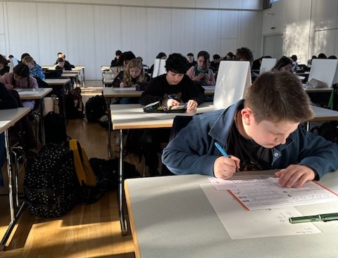 117 Schülerinnen und Schüler der Klassen 5 bis 10 der Alexander-von-Humboldt-Schule Aßlar haben sich zwei Schulstunden lang mit den unterhaltsamen Knobelaufgaben des beliebten „Känguru-Wettbewerbs der Mathematik“ beschäftigt. Wegen der großen Teilnehmerzahl wurde die Veranstaltung wie in den letzten Jahren in der Aßlarer Stadthalle durchgeführt.