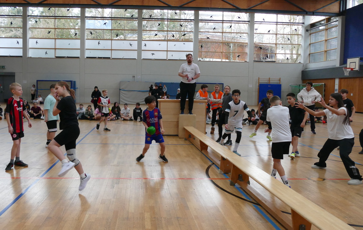 Einen Vormittag lang haben Viertklässler der umliegenden Grundschulen und die Schüler des Jahrgangs 5 der Alexander-von-Humboldt-Schule Aßlar in der Schulturnhalle um den Humboldt-Cup gekämpft. Siebzehn Klassen waren der Einladung gefolgt, an dem beliebten Völkerballturnier der Humboldt-Schule teilzunehmen, und die quirligen Jungen und Mädchen lieferten sich auf drei parallel bespielten Feldern hart umkämpfte Duelle. Offensichtlich waren alle Mannschaften äußerst motiviert und geglückte Aktionen und siegreiche Partien wurden lautstark bejubelt.