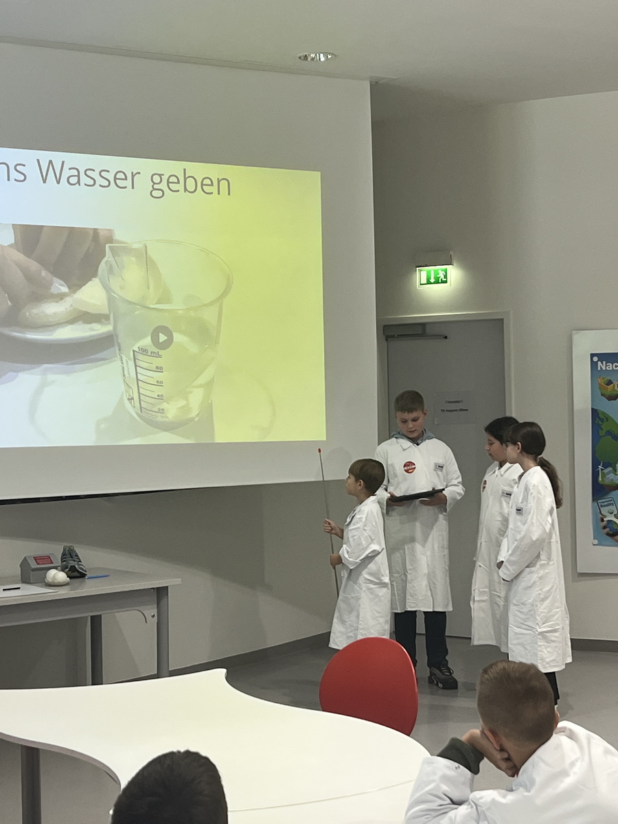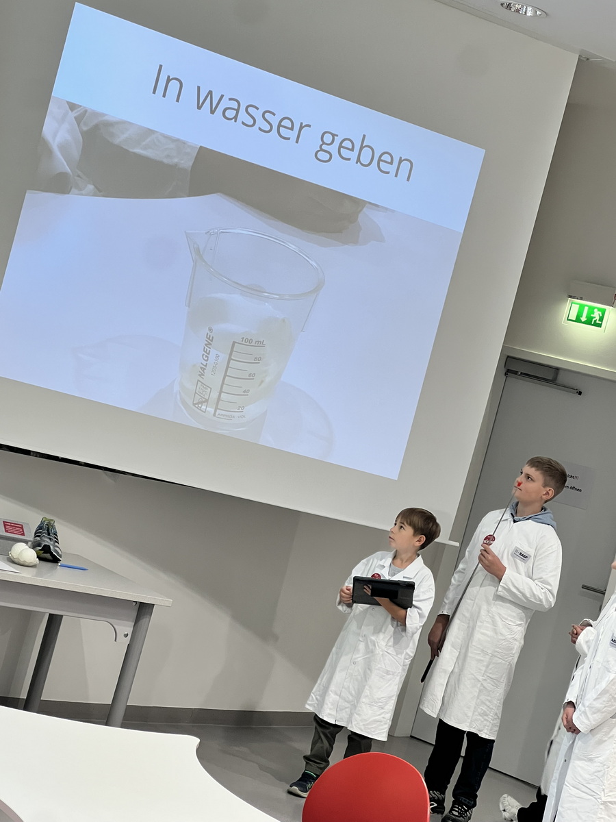 Die Aßlarer Nachwuchsforscherinnen und -forscher waren mit großem Interesse bei der Sache und erarbeiteten auf experimentellem Wege Ergebnisse, die sie anschließend mithilfe des Bookcreators auf dem IPad festhielten und ihren Mitschülerinnen und Mitschülern präsentierten.