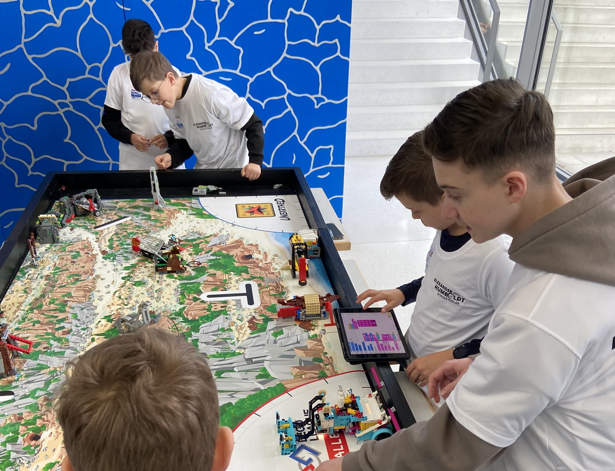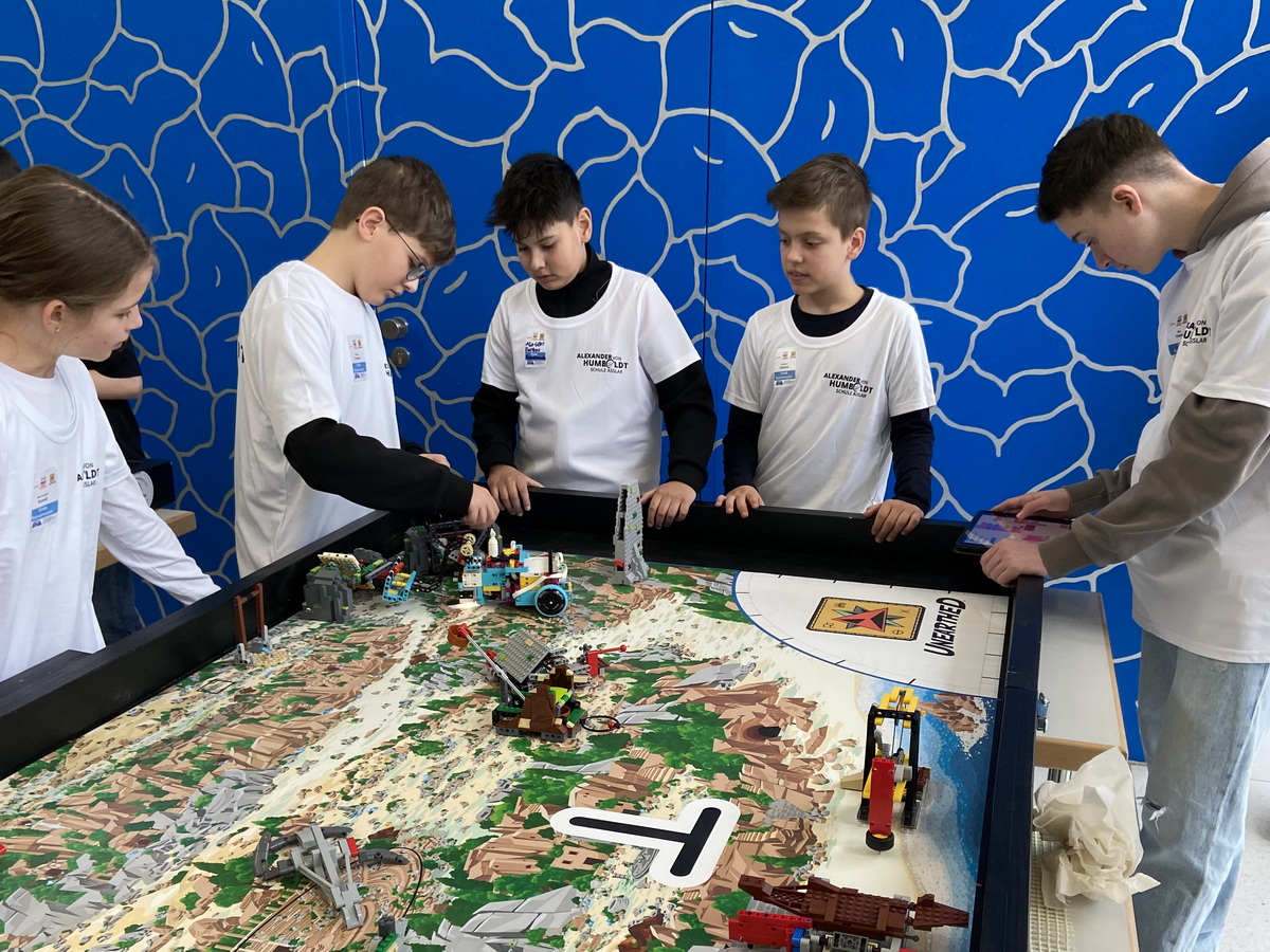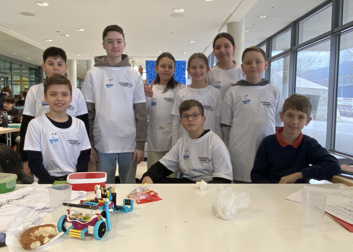 Auch wenn es für die Humboldt-Schüler nicht für einen Platz unter den drei besten Teams reichte, erhielten sie doch eine ansprechende Punktzahl beim Robot-Game, bei dem der selbst entwickelte Roboter autonom bestimmte Aufgaben auf einem Spielfeld erledigen muss, und wurden für ihre Zusammenarbeit und breite Recherche gelobt.
