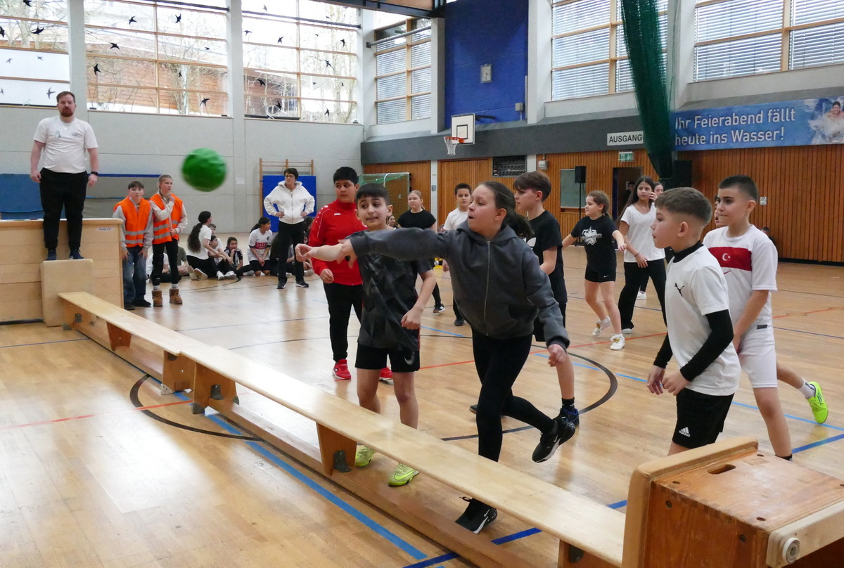 Einen Vormittag lang haben Viertklässler der umliegenden Grundschulen und die Schüler des Jahrgangs 5 der Alexander-von-Humboldt-Schule Aßlar in der Schulturnhalle um den Humboldt-Cup gekämpft. Siebzehn Klassen waren der Einladung gefolgt, an dem beliebten Völkerballturnier der Humboldt-Schule teilzunehmen, und die quirligen Jungen und Mädchen lieferten sich auf drei parallel bespielten Feldern hart umkämpfte Duelle. Offensichtlich waren alle Mannschaften äußerst motiviert und geglückte Aktionen und siegreiche Partien wurden lautstark bejubelt.